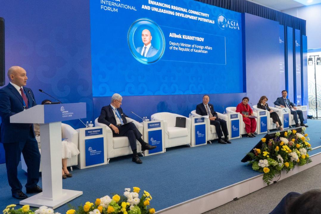 Астана, 29 мая 2025 года – Заместитель министра иностранных дел Республики Казахстан Алибек Куантыров принял участие в панельной сессии «Укрепление региональных связей и раскрытие потенциала развития», прошедшей в рамках Международного форума Астана и организованной совместно с Боаоским форумом для Азии. Обсуждение было посвящено расширению транспортной и логистической взаимосвязанности в Евразии, а также ключевым возможностям, связанным с развитием Среднего коридора.