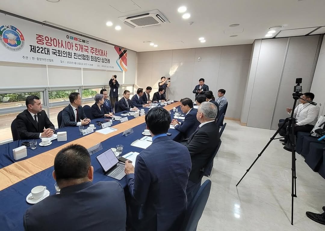 13 июня в здании Национального собрания Республики Корея прошла встреча послов стран Центральной Азии с председателями парламентских групп дружбы, действующих между Республикой Корея и государствами Центральной Азии. Во встрече также приняла участие председатель Ассоциации дружбы «Центральная Азия – Корея» Ли Ок Рюн.